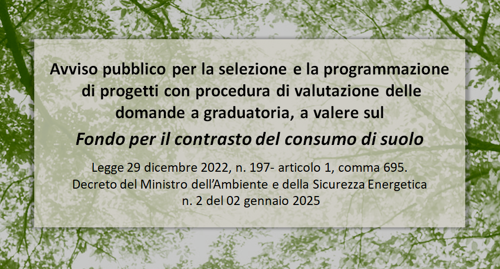Si rende disponibile la documentazione riguardante l’Avviso pubblico approvato con il Decreto del Dirigente Generale del Dipartimento dell’Ambiente n. 1368 del 01.10.2025, per la selezione di interventi di rinaturalizzazione dei suoli degradati, o in via di degrado, perché soggetti ad azioni di impermeabilizzazione, compattazione, erosione e deterioramento, con la finalità di incrementare le aree verdi ad uso pubblico, in ambito urbano e periurbano.